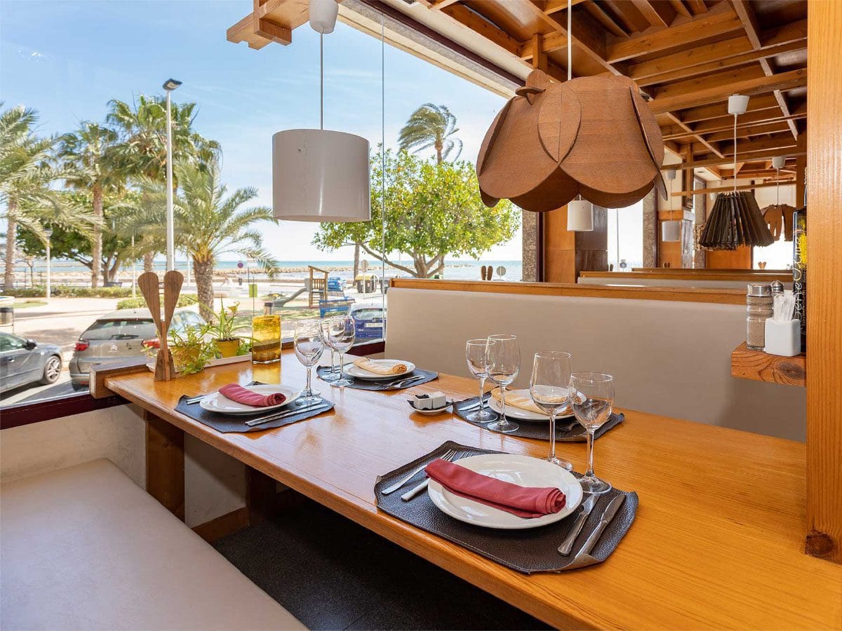This Mediterranean restaurant has modern decor and is located on the promenade and beach (Playa de Santa Pola).